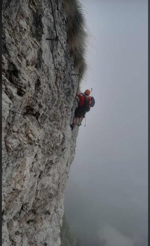 AnsehenAnstrengender Aufstieg über Geröll zum Lärchenturm, sonniger Gipfel – Übergang zum Koschutnikturm dann im Nebel, aber trotzdem großartig.