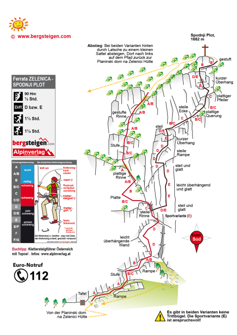 AnsehenAbwechslungsreicher Klettersteig vom Parkplatz hinterm Tutti-Free-Shop über die Zelenica-Hütte auf den Spodnji Plot mit tollem Panorama und spannenden Passagen.