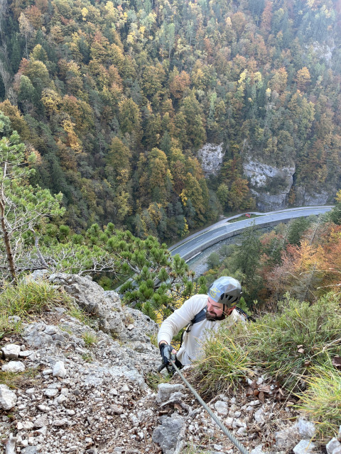 AnsehenSportklettersteig mit kurzen Stellen bis D/E, selten leichter als C