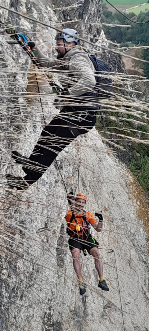 Diesmal war ich gemeinsam mit Peter und Darius unterwegs. Darius war noch nie klettern, und obwohl Stefan und ich versucht haben, es ihm auszureden, wollte er unbedingt selbst rauf. Also hab ich Peter gefragt, ob er Zeit hat – und zusammen haben wir’s in etwas über zwei Stunden geschafft.