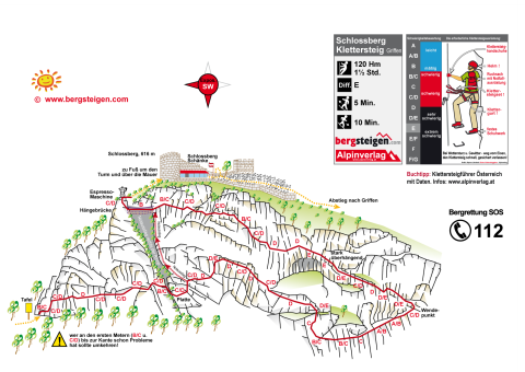 AnsehenSportklettersteig mit kurzen Stellen bis D/E, selten leichter als C
