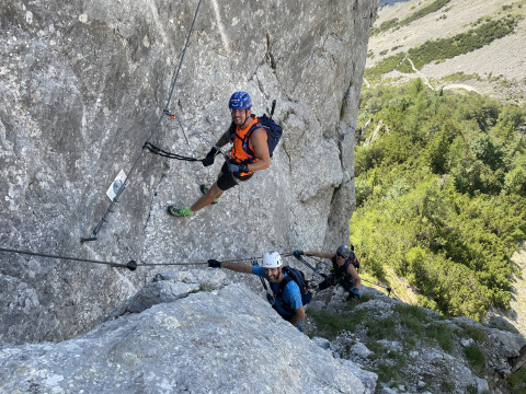 AnsehenVielseitiges Klettersteiggebiet mit Routen von A bis E – zahlreiche Kombinationen möglich, mit Highlights wie Seilbrücken, Kaminpassagen und Panoramablicken.